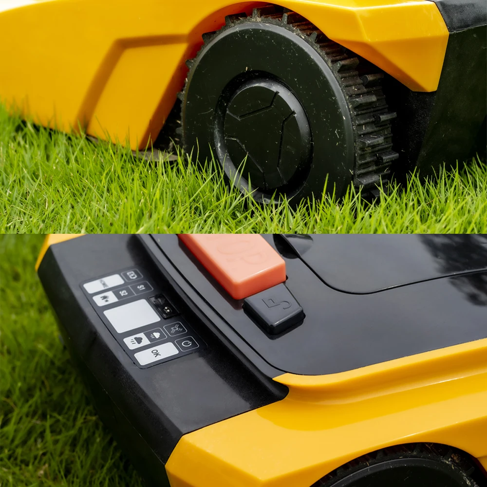 - Automatisches Aufladen: Der Mäher kehrt bei niedrigem Akkustand selbstständig zur Ladestation zurück und setzt die Arbeit dort fort, wo er aufgehört hat.