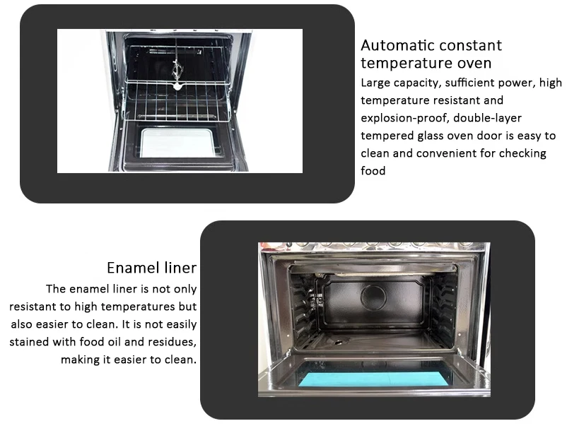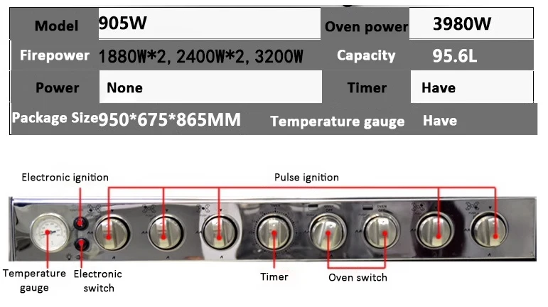 Der Erdgasherd mit integriertem Backofen von Maxky vereint Leistung, Haltbarkeit und elegantes Design. Hergestellt aus hochwertigem Edelstahl und mit einem einteiligen Gasofen ausgestattet, eignet sich dieser Herd perfekt für den Einsatz in Hotels, Restaurants oder sogar in Familienküchen. Sein Fassungsvermögen von 95L und seine Leistung von 3980W sorgen dafür, dass Ihre Gerichte schnell und gleichmäßig gegart werden, während die Temperaturkontrolle für beste Kochergebnisse sorgt. Er ist einfach zu installieren und arbeitet mit einer mechanischen Timersteuerung, die dem Benutzer eine einfache Handhabung und einen zuverlässigen Betrieb bietet. Das Gehäuse aus rostfreiem Stahl und gehärtetem Glas sorgt für eine hohe Hitze- und Stoßfestigkeit und bietet eine lange Lebensdauer bei intensiver Nutzung. Dieser Herd ist mit einem Wärmeregulierungssystem für eine präzise Temperaturkontrolle ausgestattet, wodurch er sich ideal für schonendes Kochen eignet. Mit seinem modernen schwarzen Design passt er perfekt in jede Küche und bietet ausreichend Kapazität und Leistung für den professionellen Einsatz oder den Hausgebrauch.Hauptmerkmale: