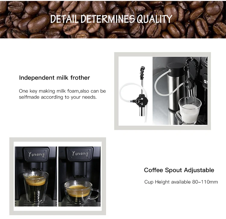 Die Espressomaschine YN-717 wurde für den Einsatz in professionellen Umgebungen wie Büros, Hotels oder anderen gewerblichen Räumen entwickelt. Mit einer Kapazität von 15 Tassen erfüllt sie die Anforderungen kleiner und mittlerer Unternehmen, die eine praktische und effiziente Lösung für das Servieren von Qualitätskaffee suchen. Sie ist mit einem 20-Bar-Drucksystem ausgestattet, das eine optimale Extraktion des Kaffees ermöglicht und so bei jeder Verwendung ein reichhaltiges und schmackhaftes Getränk bietet. Die Maschine verfügt über mehrere praktische Funktionen: ein leistungsstarkes Brühsystem, eine Mengenregulierung von 20 bis 250 ml, um die Kaffeemenge anzupassen, und eine Heißwasserfunktion für verschiedene Getränke. Darüber hinaus ermöglicht die verstellbare Kaffeeausgabehöhe (70-110mm) die Verwendung einer Vielzahl von Tassen und Bechern. Das Edelstahlgehäuse sorgt für Robustheit und Eleganz und der 2L Wassertank ermöglicht die Zubereitung mehrerer Tassen ohne häufiges Nachfüllen. Der 300g-Kaffeebohnenbehälter sorgt dafür, dass die Maschine mehrere Kunden bedienen kann, ohne dass ständig Nachschub benötigt wird. Die YN-717 ist außerdem einfach zu warten und verfügt über einen 15-teiligen Schlackekuchenbehälter, der die Reinigung und Wartung erleichtert. Diese Espressomaschine ist netzbetrieben mit einer Nennleistung von 1200 W und arbeitet mit einer Spannung von 220 V, um eine gleichbleibende Leistung zu gewährleisten.