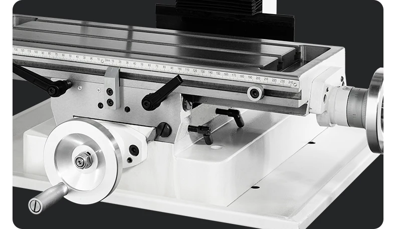- Geräumiger Arbeitstisch: Abmessungen von 500×180 mm mit T-Schlitzen für eine bessere Fixierung der Werkstücke.