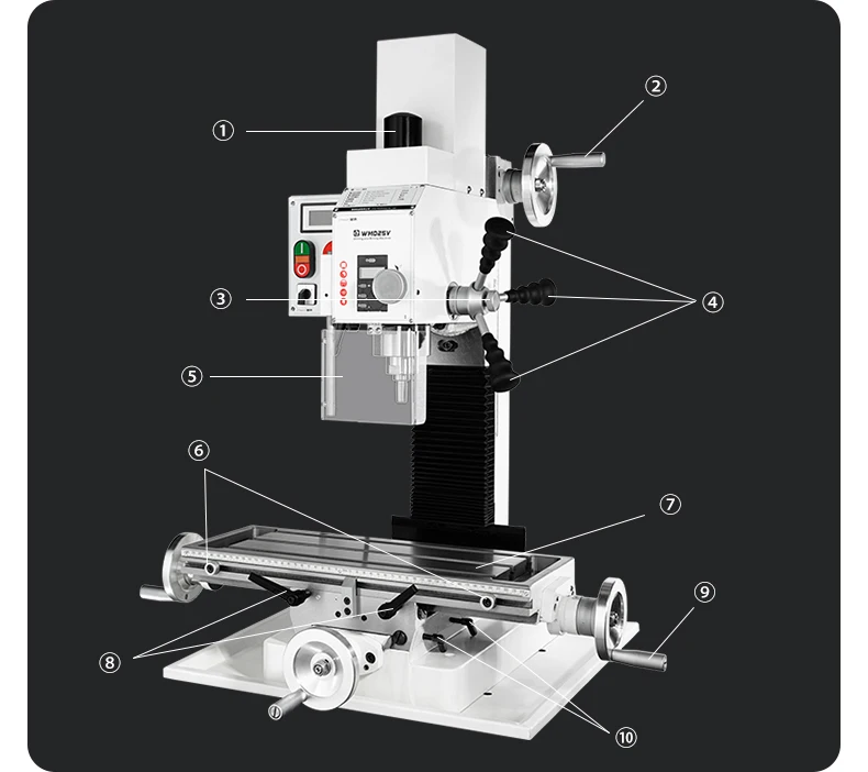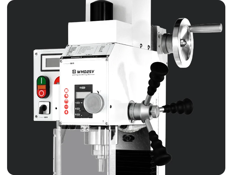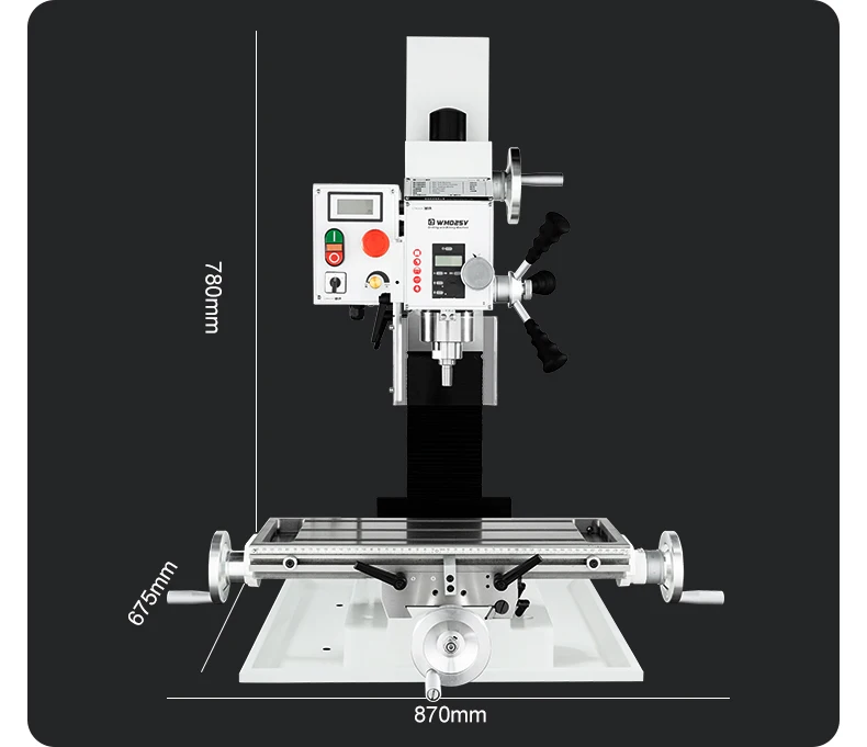 Diese kompakte Bohr- und Fräsmaschine, Modell WMD25V, bietet eine perfekte Kombination aus Leistung, Vielseitigkeit und Praktikabilität für Profis und Hobbyhandwerker. Sie wurde mit hochwertigen Komponenten entwickelt und bietet eine zuverlässige Leistung bei leichten bis mittelschweren Bearbeitungsanwendungen.