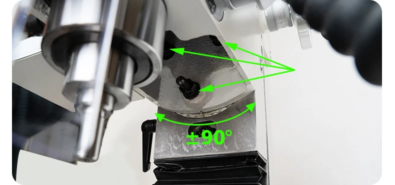 - Flexibles Arbeiten: Um ±90° schwenkbarer Kopf und 255 mm Vertikalhub für vielfältige Arbeiten.